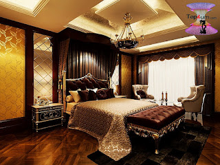 ولا داعي لضخامة التاج فوق الستارة حتى لا يتكدس عليه الغبار.الألوان الهادئة هي المفضلة لغرف النوم.الأهم اختيار الأثاث المناسب حجما مع مساحة الغرفة و عدم تكديس الأثاث من أجل الإستعراض.